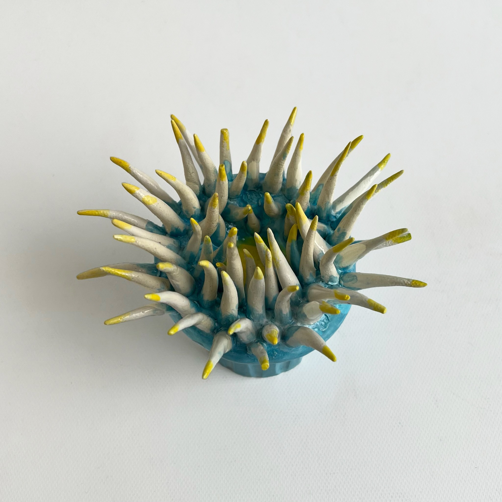 Glazed porcelain, painted wood, wire